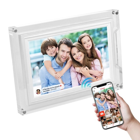 10,1-Zoll-WLAN-Digitalbilderrahmen mit Frameo App - Acryl rahmen design, 32GB Speicher IPS Touchscreen Einfache Freigabe über App